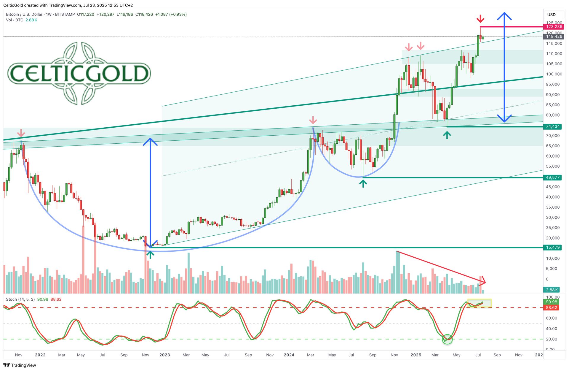 Bitcoin in USD, Weekly Chart as of July 23rd, 2025. Source: Tradingview