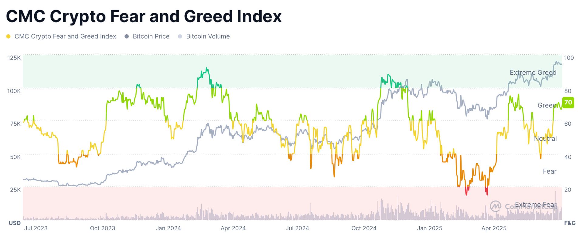CMC Crypto Fear & Greed Index as of July 23rd, 2025. Source: Coinmarketcap.