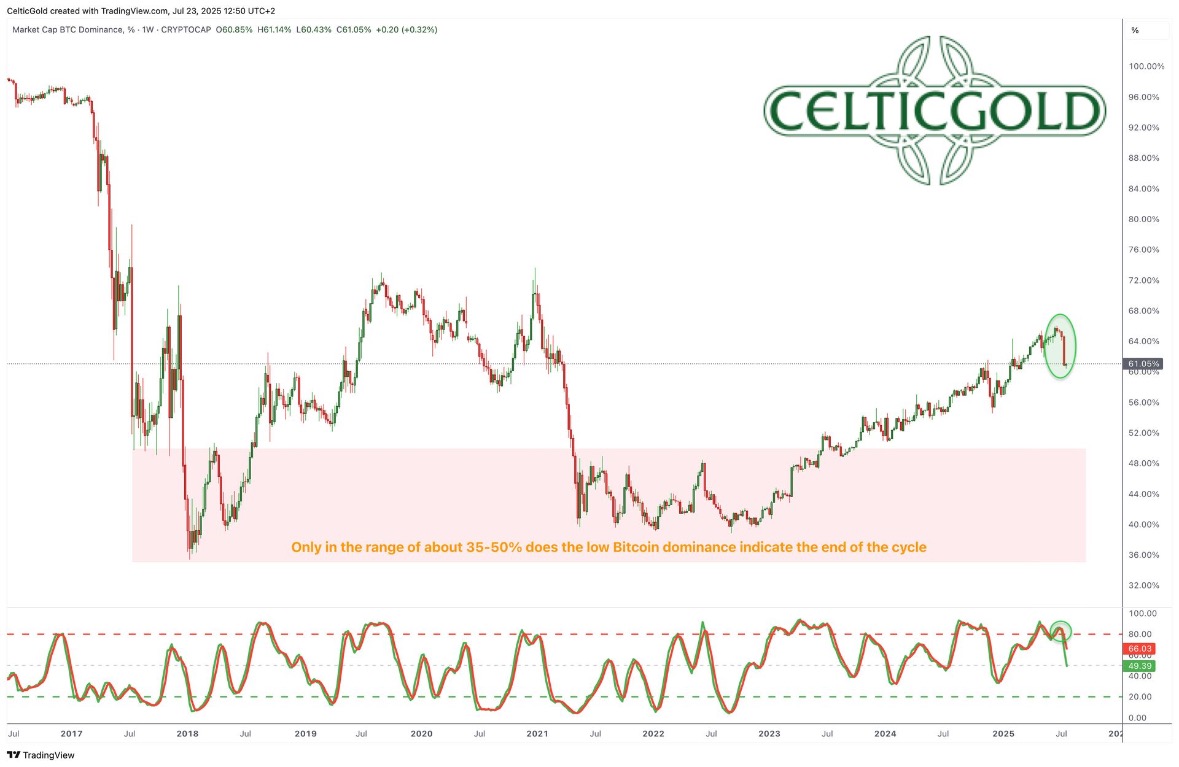 Bitcoin Dominance in Percent, Weekly Chart as of July 23rd, 2025. Source: Tradingview
