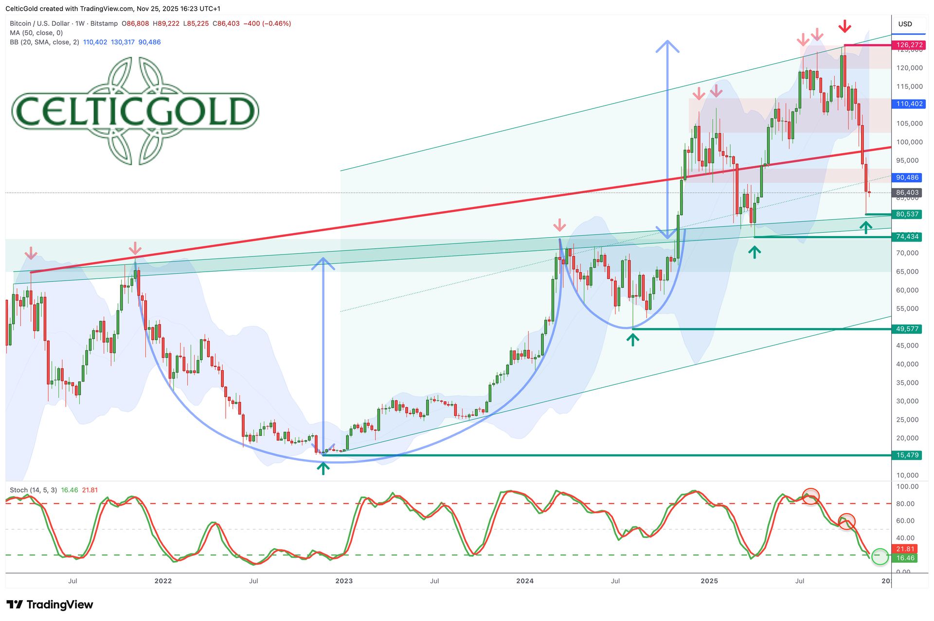 Bitcoin in USD, weekly chart as of November 25th, 2025. Source: Tradingview