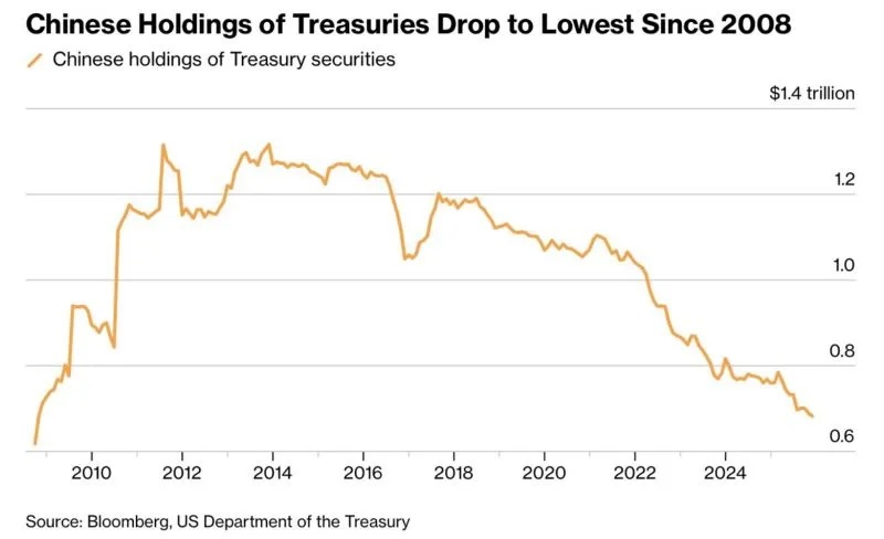 Chinese Holdings of Treasuries as of 16th February 2026. Source: Bloomberg, US Department of the Treasury