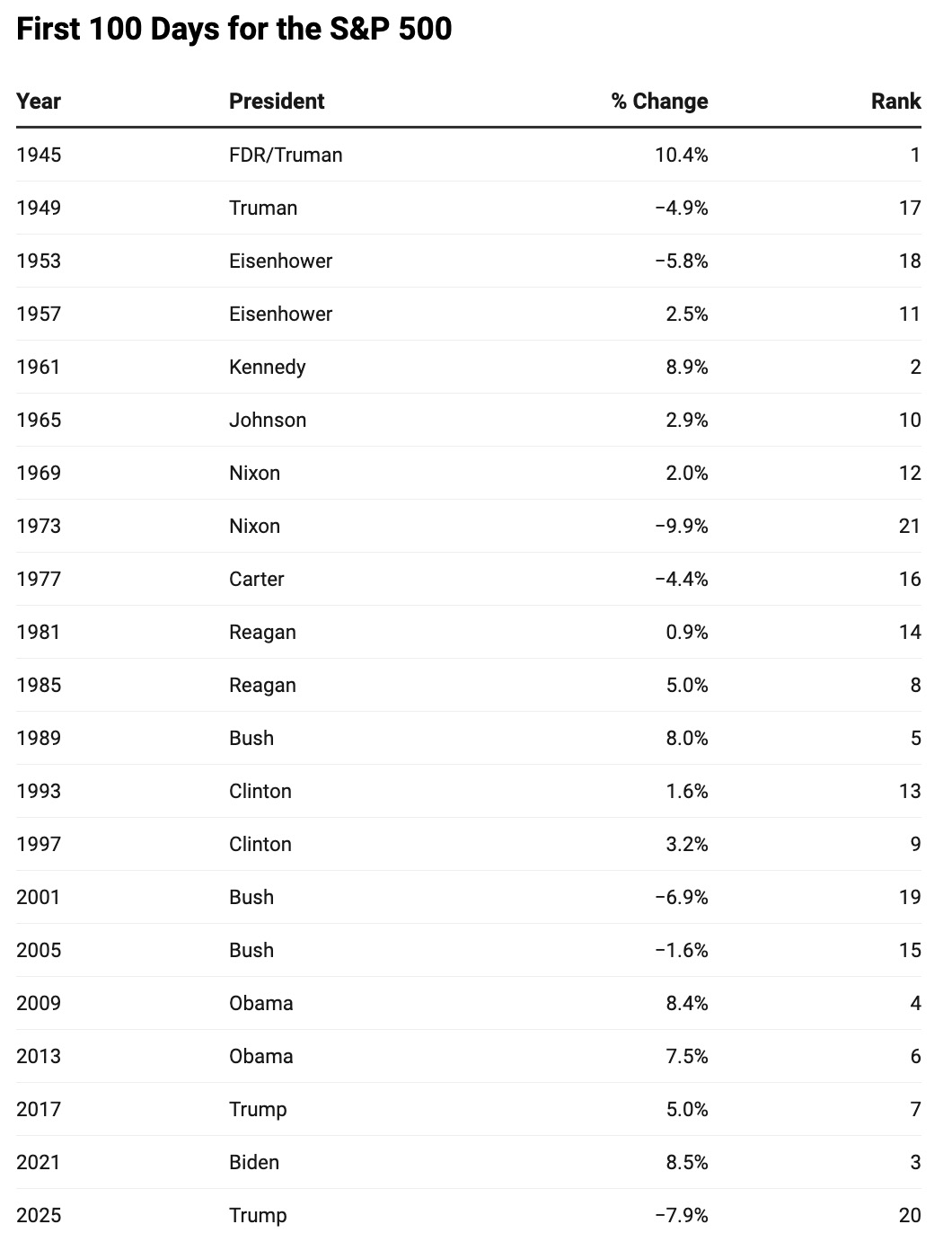 The First 100 Days for the S&P 500 Under a New US President. Source: Holger Zschaepitz